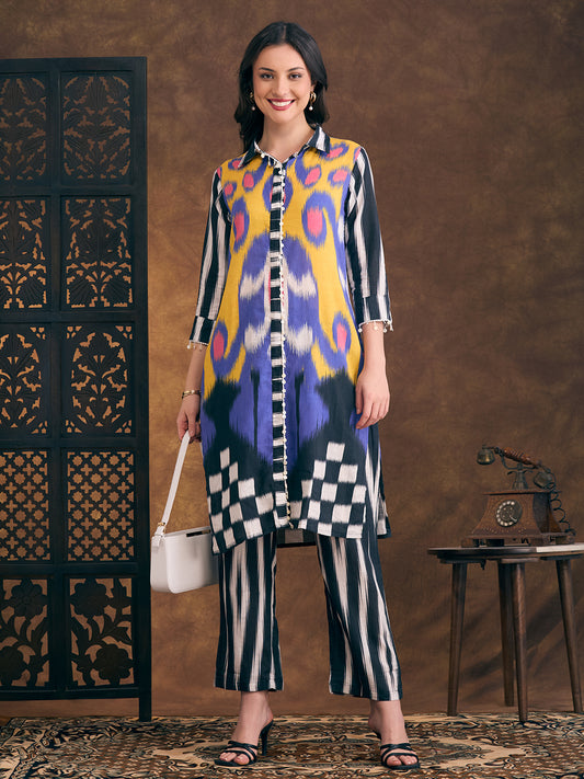 Ethnic Ikat Printed Straight Kurta with Pant...