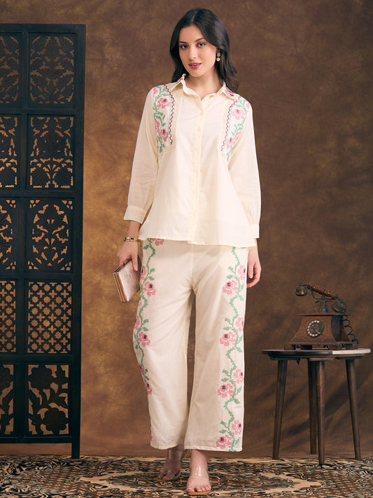 Solid Ethnic Embroidered A-Line Co-ord Set -...