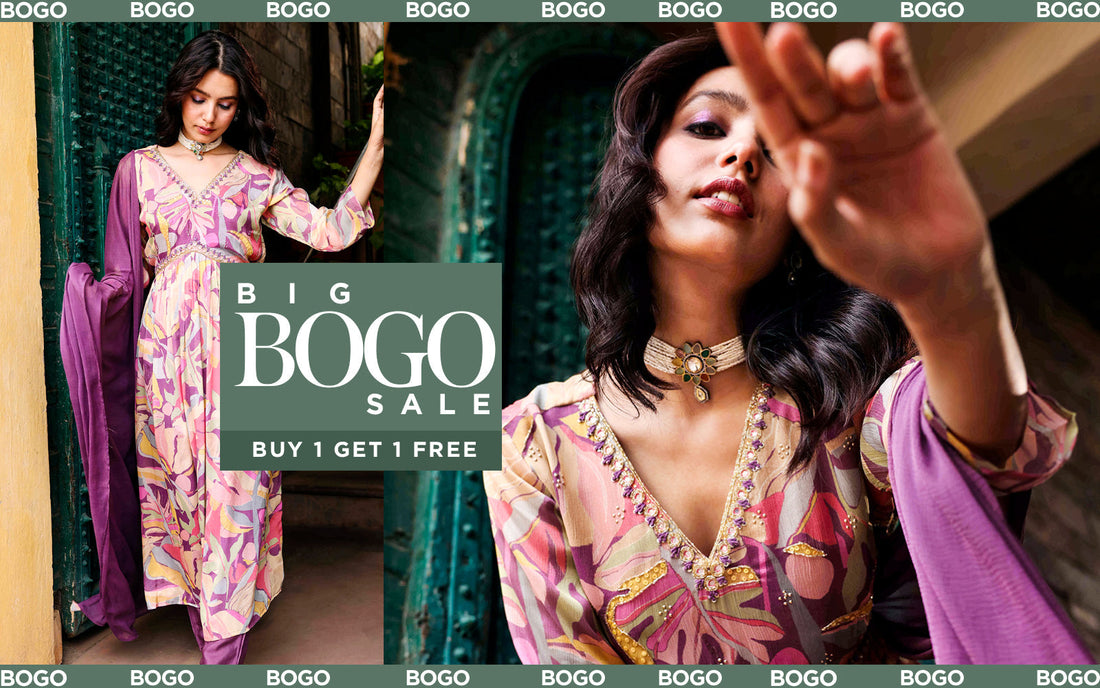 FASHOR’s Big BOGO Sale is here, offering you the perfect opportunity to elevate your wardrobe with the finest ethnic and fusion wear at an exclusive Buy 1 Get 1 Free offer. Whether you're looking for luxe wedding looks, celebrating a festive occasion, thinking of chic office wear, or stocking up on your new wardrobe essentials, FASHOR’s BIG BOGO SALE has an impeccable selection for every moment. From exquisitely crafted kurtas and co-ord sets to sophisticated maxi dresses, all made from luxurious fabrics like cotton, muslin silk, organza and satin. And, for those who love a touch of celebrity-inspired style, don’t miss out on the carefully selected pieces from Sara Ali Khan’s favorites, which seamlessly blend timeless elegance with modern flair. Explore the BIG BOGO SALE Now!