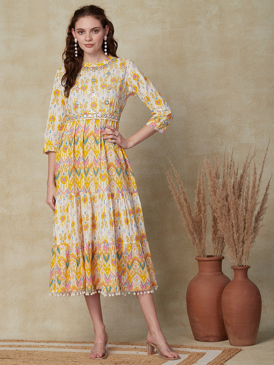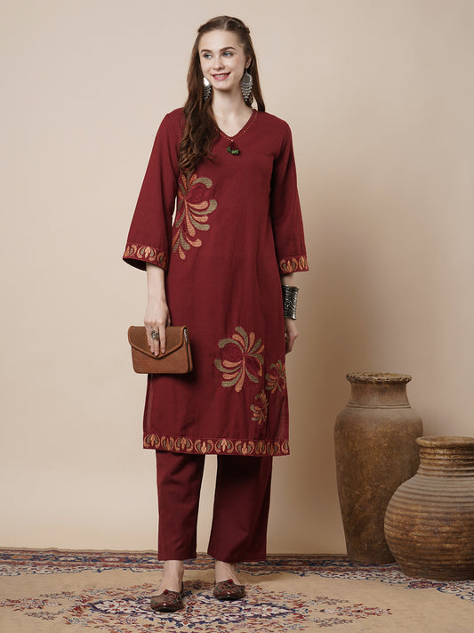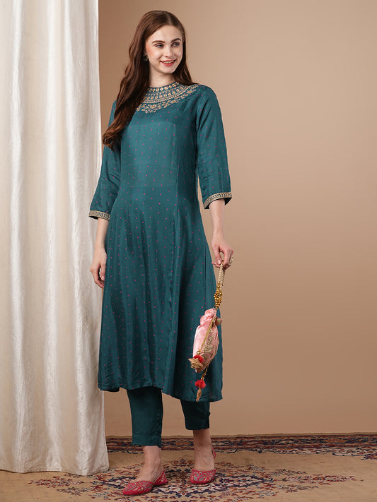 Solid Ethnic Embroidered A-Line Co-ord Set -...
