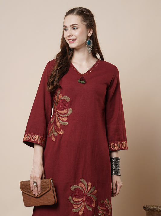 Solid Ethnic Embroidered Straight Kurta with Princess...