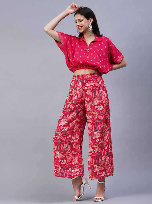 Solid Floral Zari Embroidered A-Line Fit Co-ord...