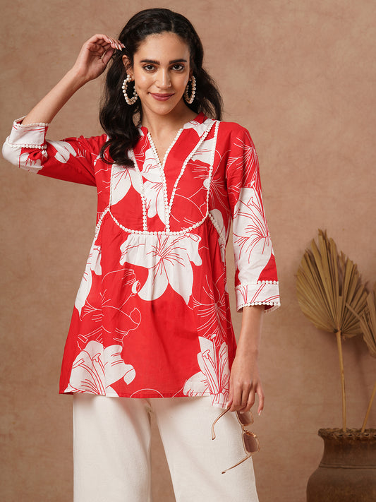 Ethnic Floral Block Printed A-Line Short Cotton...