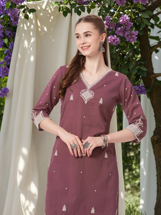 Solid Sequin Embroidered Straight Fit Kurta with...