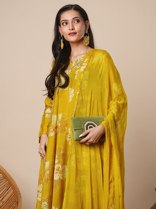 Floral Printed & Hand Embroidered Anarkali Kurta...