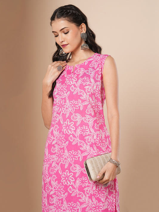 Ethnic Floral Printed Embroidered Straight Fit Kurta...