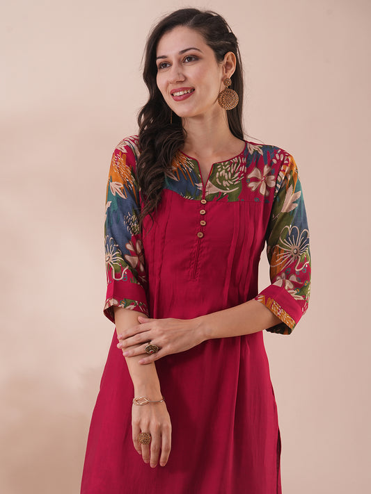 Solid Ethnic Floral Printed & Sequined Straight...