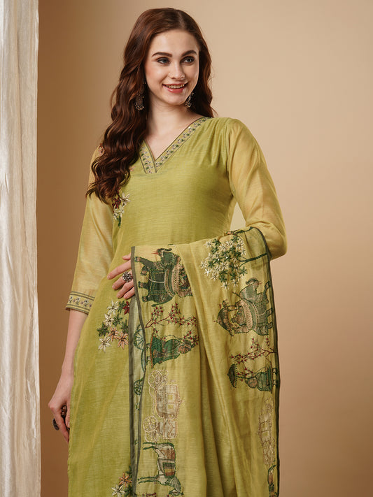 Ethnic Khari Printed & Embroidered Straight Fit...
