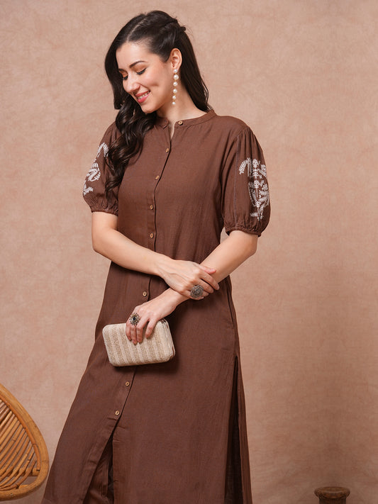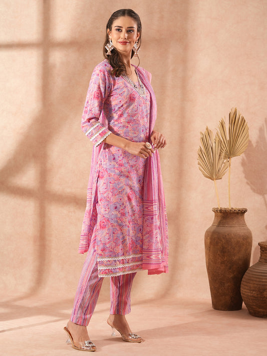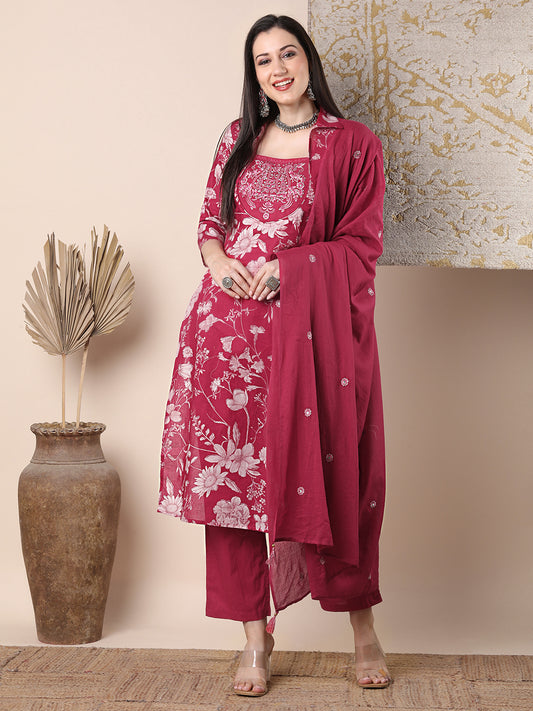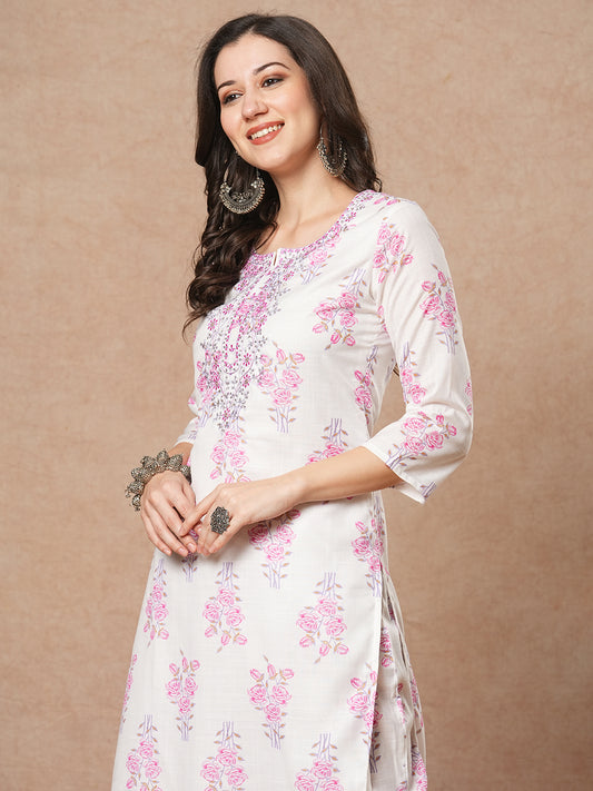 Ethnic Floral Printed & Embroidered Straight Kurta...