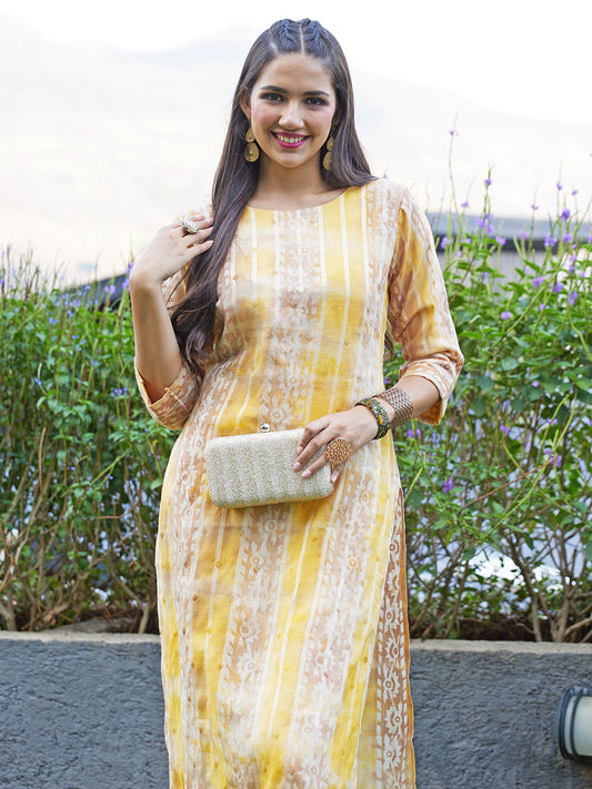 Ethnic Stripes Printed & Embroidered Straight Fit...