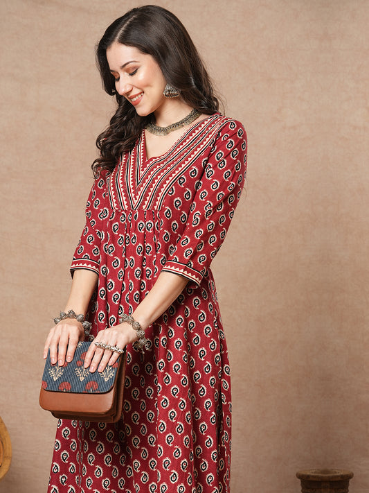 Ethnic & Stripes Printed A-Line Pleated Kurta...