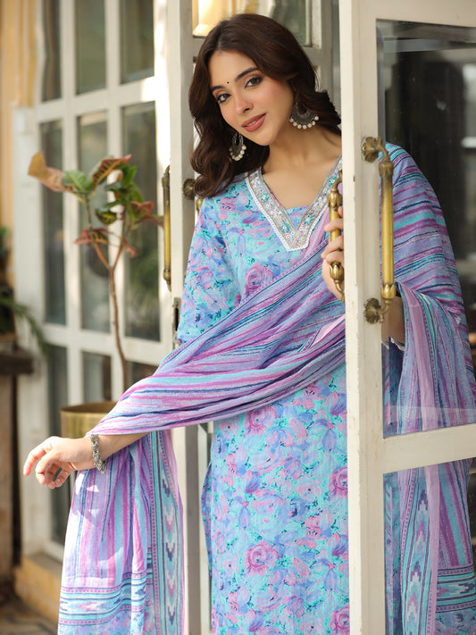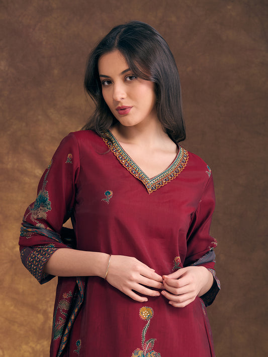 Floral Hand Embroidered A-Line Kurta with Palazzo...