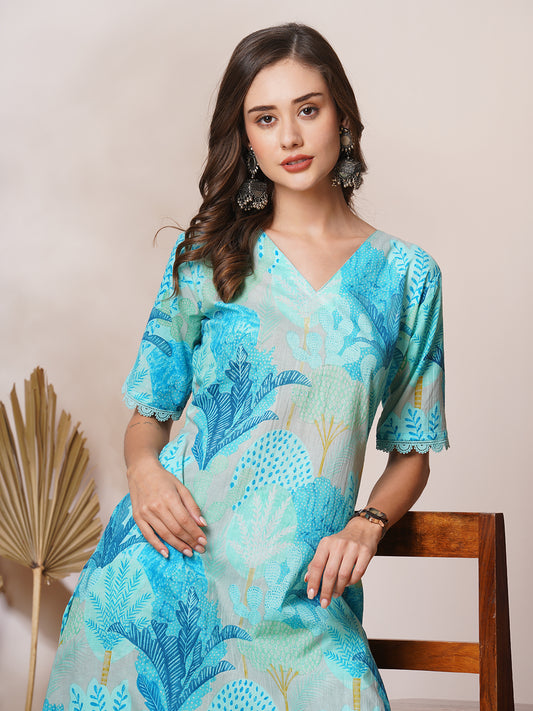 Ethnic Printed & Embroidered Straight Fit Kurta...