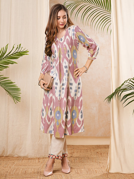 Ethnic Ikat Printed A-Line Pleated Flared Kurta...