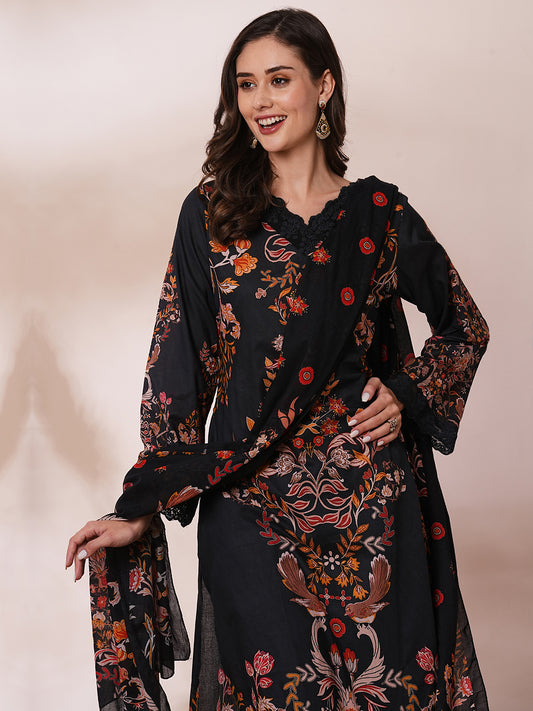 Ethnic Floral Printed Straight Fit Cotton Kurta...