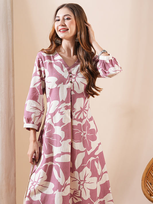 Ethnic Printed A-Line Paneled Flared Midi Dress...