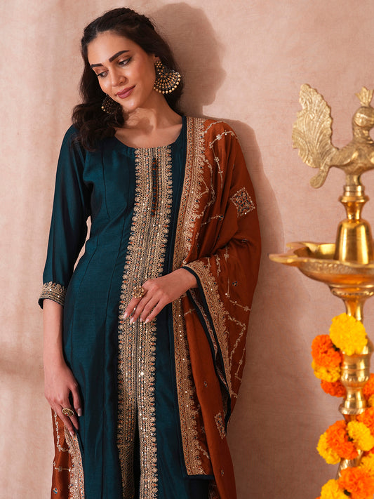 Solid Ethnic Sequin Embroidered Anarkali Kurta with...
