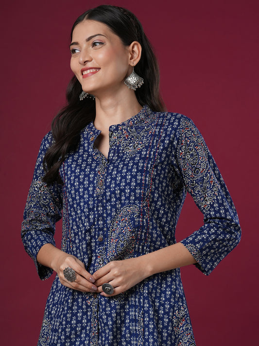 Ethnic Floral Printed A-Line Pin Tucked Short...