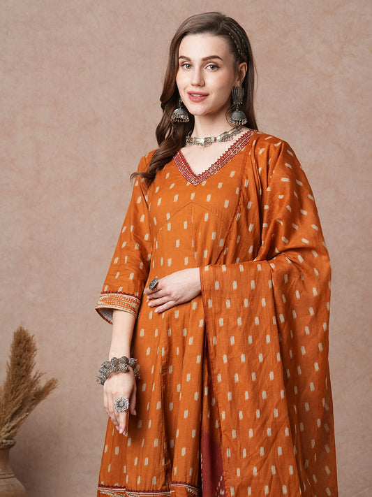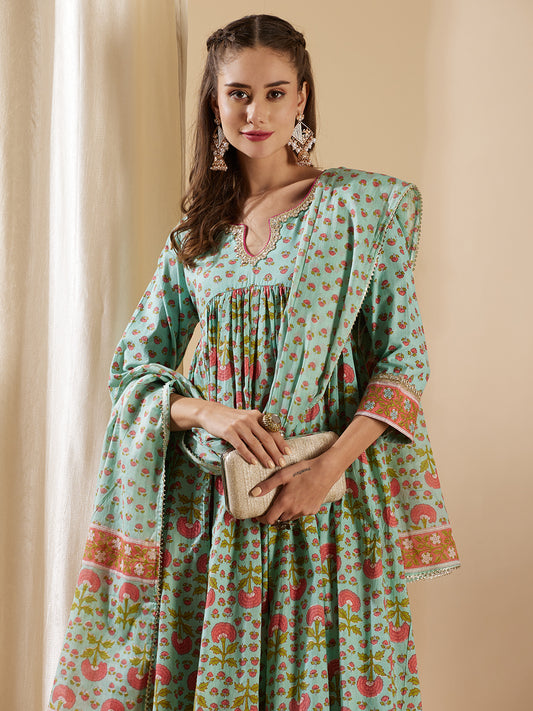 Ethnic Printed Anarkali Flared Kurta with Pant...