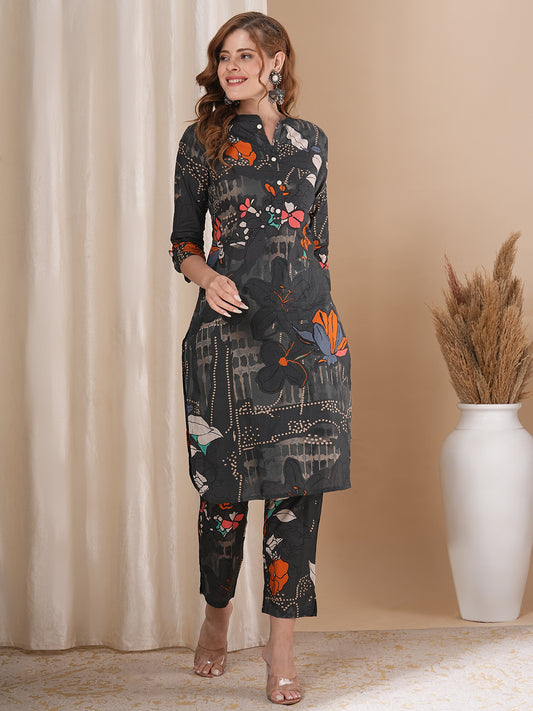 Abstract Floral Printed Straight Fit Co-ord Set...
