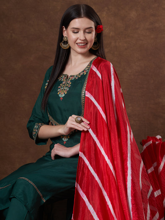 MRP (Inclusive of all taxes)Regular price ₹ 2,449.00₹ 2,449.00 Regular priceUnit price / per₹ 6,199.00Sale priceM L XL 2XL 3XL add to cartSale{"id":7588768219222,"title":"Solid Ethnic Embroidered Straight Fit Kurta with Pant \u0026 Dupatta - Green","handle":"solid-ethnic-embroidered-straight-fit-kurta-with-pant-dupatta-green-2","description":"\u003ch1\u003eHighlights\u003c\/h1\u003e\n\u003cp\u003e\u003cbr\u003e-Straight Fit Kurta\u003cbr\u003e-Ethnic Embroidered Yoke\u003cbr\u003e-Comes with Leheriya Printed Dupatta\u003c\/p\u003e\n\u003ch1\u003eFabric \u0026amp; Colour\u003c\/h1\u003e\n\u003cp\u003e\u003cbr\u003eTop Colour: Green\u003cbr\u003eTop Fabric: Muslin Silk\u003cbr\u003eBottom Colour: Green\u003cbr\u003eBottom Fabric: Shantoon\u003cbr\u003eDupatta Colour: Red\u003cbr\u003eDupatta Fabric: Silk Blend\u003c\/p\u003e\n\u003ch1\u003eSpecifications\u003c\/h1\u003e\n\u003cp\u003e\u003cbr\u003eTop Design: Solid\u003cbr\u003eTop Craft: Embroidery, Plain and Prints\u003cbr\u003eTop Shape: Straight\u003cbr\u003eNeck: Round Neck\u003cbr\u003eSleeve Length: Three-Quarter Sleeves\u003cbr\u003eTop Length: Knee Length\u003cbr\u003eHemline: Straight\u003cbr\u003eSlit: Side Slits\u003c\/p\u003e\n\u003cp\u003eBottom Type: Trousers\u003cbr\u003eBottom Closure: Slip-On\u003cbr\u003eWaistband: Elasticated\u003c\/p\u003e\n\u003cp\u003eDupatta Pattern: Dyed, Printed\u003cbr\u003eDupatta Border: NA\u003c\/p\u003e\n\u003cp\u003eWash Care: Hand Wash\u003c\/p\u003e\n\u003cp\u003eLength (in inches)\u003cbr\u003eKurta – 46, Sleeves – 17,\u003cbr\u003eBottom – 35\u003c\/p\u003e\n\u003cp\u003eModel’s Height: 5’7”. Wearing Size S.\u003c\/p\u003e\n\u003ch1\u003eProduct Information\u003c\/h1\u003e\n\u003cp\u003e\u003cbr\u003eManufactured\/Packed\/Marketed By:\u003cbr\u003eFashor Lifestyle Pvt. Ltd.\u003cbr\u003e28\/30, Sudarshanpura Industrial Area,\u003cbr\u003eJaipur - 302006.\u003cbr\u003eCountry of Origin: India\u003c\/p\u003e","published_at":"2025-07-12T16:21:18+05:30","created_at":"2025-07-12T15:20:42+05:30","vendor":"FASHOR","type":"3P Kurta Set","tags":["2001-3000","23866","3XL","All Styles","bs","casualwear","colour_Green","craft_embroidery","craft_plain-and-prints","design_solid","fabric_muslin-silk","KURTI","kurtis","meta-size-chart-","now-trending","rakhi","rakhi-favourites","shape_straight"],"price":244900,"price_min":244900,"price_max":244900,"available":true,"price_varies":false,"compare_at_price":619900,"compare_at_price_min":619900,"compare_at_price_max":619900,"compare_at_price_varies":false,"variants":[{"id":42467545120854,"title":"M","option1":"M","option2":null,"option3":null,"sku":"38-ST023866F4FS","requires_shipping":true,"taxable":false,"featured_image":{"id":34667424317526,"product_id":7588768219222,"position":3,"created_at":"2025-07-12T15:21:14+05:30","updated_at":"2025-07-12T15:21:34+05:30","alt":null,"width":1080,"height":1440,"src":"\/\/fashor.com\/cdn\/shop\/files\/31451_8.jpg?v=1752313894","variant_ids":[42467545120854,42467545153622,42467545186390,42467545219158,42467545251926]},"available":false,"name":"Solid Ethnic Embroidered Straight Fit Kurta with Pant \u0026 Dupatta - Green - M","public_title":"M","options":["M"],"price":244900,"weight":0,"compare_at_price":619900,"inventory_quantity":0,"inventory_management":"shopify","inventory_policy":"deny","barcode":"","featured_media":{"alt":null,"id":26937513443414,"position":3,"preview_image":{"aspect_ratio":0.75,"height":1440,"width":1080,"src":"\/\/fashor.com\/cdn\/shop\/files\/31451_8.jpg?v=1752313894"}},"requires_selling_plan":false,"selling_plan_allocations":[],"quantity_rule":{"min":1,"max":null,"increment":1}},{"id":42467545153622,"title":"L","option1":"L","option2":null,"option3":null,"sku":"40-ST023866F4FS","requires_shipping":true,"taxable":false,"featured_image":{"id":34667424317526,"product_id":7588768219222,"position":3,"created_at":"2025-07-12T15:21:14+05:30","updated_at":"2025-07-12T15:21:34+05:30","alt":null,"width":1080,"height":1440,"src":"\/\/fashor.com\/cdn\/shop\/files\/31451_8.jpg?v=1752313894","variant_ids":[42467545120854,42467545153622,42467545186390,42467545219158,42467545251926]},"available":false,"name":"Solid Ethnic Embroidered Straight Fit Kurta with Pant \u0026 Dupatta - Green - L","public_title":"L","options":["L"],"price":244900,"weight":0,"compare_at_price":619900,"inventory_quantity":0,"inventory_management":"shopify","inventory_policy":"deny","barcode":"","featured_media":{"alt":null,"id":26937513443414,"position":3,"preview_image":{"aspect_ratio":0.75,"height":1440,"width":1080,"src":"\/\/fashor.com\/cdn\/shop\/files\/31451_8.jpg?v=1752313894"}},"requires_selling_plan":false,"selling_plan_allocations":[],"quantity_rule":{"min":1,"max":null,"increment":1}},{"id":42467545186390,"title":"XL","option1":"XL","option2":null,"option3":null,"sku":"42-ST023866F4FS","requires_shipping":true,"taxable":false,"featured_image":{"id":34667424317526,"product_id":7588768219222,"position":3,"created_at":"2025-07-12T15:21:14+05:30","updated_at":"2025-07-12T15:21:34+05:30","alt":null,"width":1080,"height":1440,"src":"\/\/fashor.com\/cdn\/shop\/files\/31451_8.jpg?v=1752313894","variant_ids":[42467545120854,42467545153622,42467545186390,42467545219158,42467545251926]},"available":false,"name":"Solid Ethnic Embroidered Straight Fit Kurta with Pant \u0026 Dupatta - Green - XL","public_title":"XL","options":["XL"],"price":244900,"weight":0,"compare_at_price":619900,"inventory_quantity":0,"inventory_management":"shopify","inventory_policy":"deny","barcode":"","featured_media":{"alt":null,"id":26937513443414,"position":3,"preview_image":{"aspect_ratio":0.75,"height":1440,"width":1080,"src":"\/\/fashor.com\/cdn\/shop\/files\/31451_8.jpg?v=1752313894"}},"requires_selling_plan":false,"selling_plan_allocations":[],"quantity_rule":{"min":1,"max":null,"increment":1}},{"id":42467545219158,"title":"2XL","option1":"2XL","option2":null,"option3":null,"sku":"44-ST023866F4FS","requires_shipping":true,"taxable":false,"