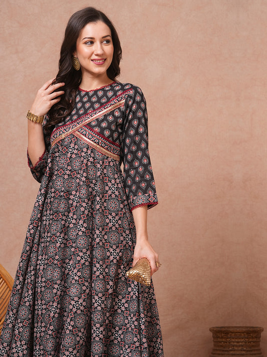 Ethnic Printed A-Line Flared Kurta with Pant...