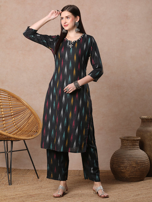 Ethnic Ikat Woven Straight Fit Co-ord Set...