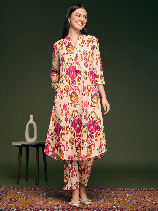 Abstract Ikat Printed A-Line Co-ord Set -...