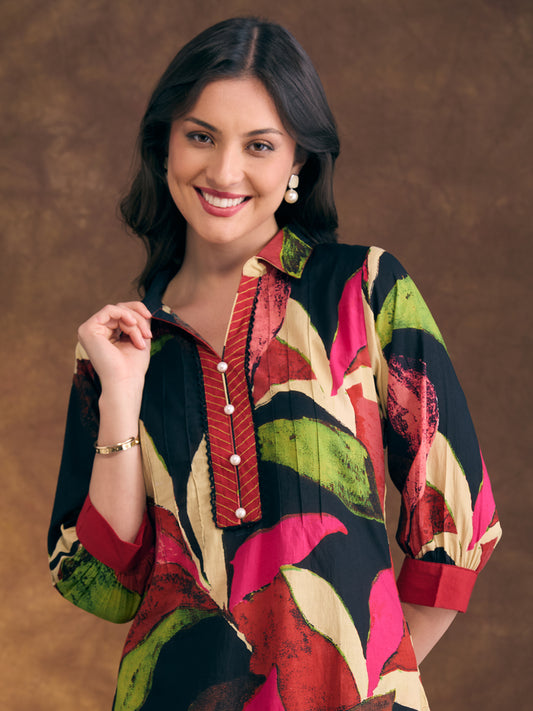 Abstract Floral Printed Straight Fit Co-ord Set...