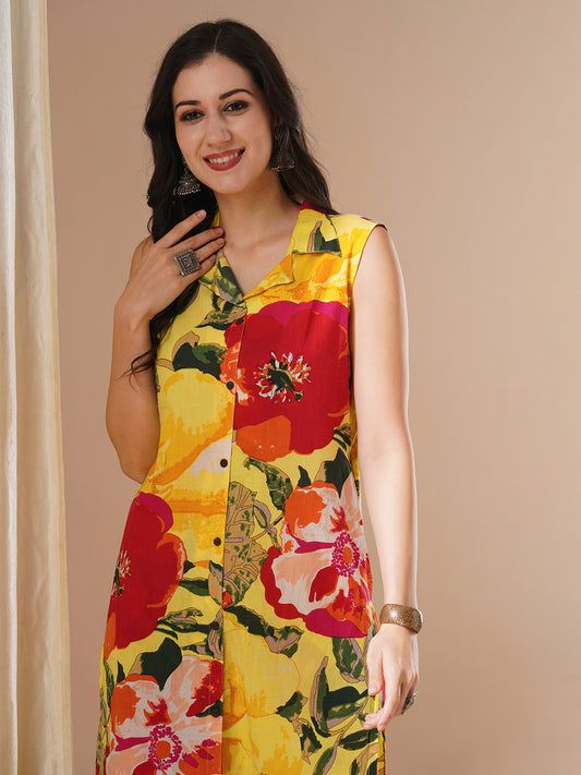 Ethnic Floral Printed A-Line Flared Kurta -...