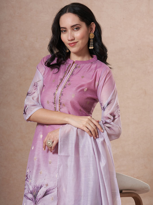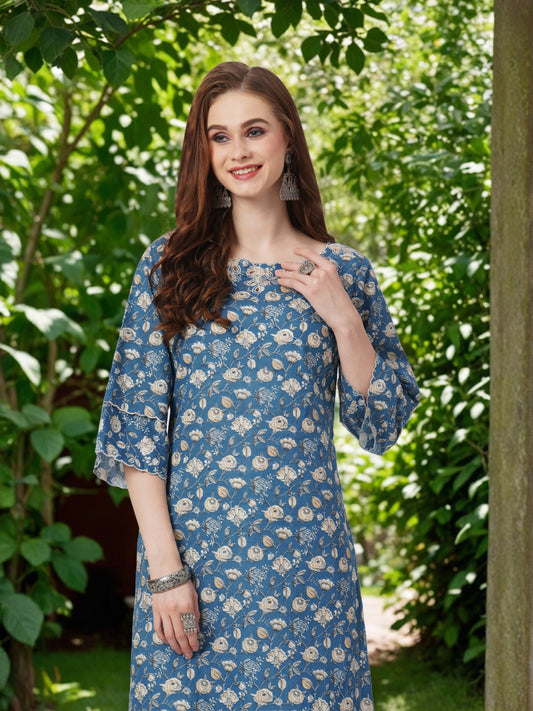 Floral Printed Embroidered Straight Fit Kurta with...