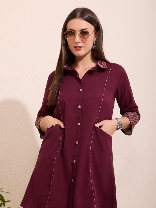 MRP (Inclusive of all taxes)Regular price ₹ 1,699.00₹ 1,699.00 Regular priceUnit price / per₹ 4,299.00Sale priceM L XL 2XL 3XL add to cartSale{"id":7583898140758,"title":"Solid Kantha Embroidered A-Line Paneled Co-ord Set - Burgundy","handle":"solid-kantha-embroidered-a-line-paneled-co-ord-set-burgundy","description":"\u003ch1\u003eHighlights\u003c\/h1\u003e\n\u003cp\u003e\u003cbr\u003e-Elevate your ethnic style with this Solid Kantha Embroidered A-Line Paneled Co-ord Set in rich burgundy. Crafted from soft, flowy viscose rayon, the set features a flattering A-line silhouette with subtle panels for added movement. The shirt-style collar adds a tailored touch, while intricate Kantha embroidery on the cuffs infuses artisanal charm. Perfectly blending tradition with contemporary elegance, this co-ord set is your go-to for effortless sophistication.\u003c\/p\u003e\n\u003ch1\u003eFabric \u0026amp; Colour\u003c\/h1\u003e\n\u003cp\u003e\u003cbr\u003eTop Colour: Burgundy\u003cbr\u003eTop Fabric: Viscose Rayon\u003cbr\u003eBottom Colour: Burgundy\u003cbr\u003eBottom Fabric: Viscose Rayon\u003c\/p\u003e\n\u003ch1\u003eSpecifications\u003c\/h1\u003e\n\u003cp\u003e\u003cbr\u003eTop Design: Solid\u003cbr\u003eTop Craft: Sequins, Embroidery, Plain and Prints\u003cbr\u003eTop Shape: A-line\u003cbr\u003eNeck: Shirt Collar\u003cbr\u003eSleeve Length: Three-Quarter Sleeves\u003cbr\u003eTop Length: Above Knee\u003cbr\u003eHemline: Straight\u003cbr\u003e\u003c\/p\u003e\n\u003cp\u003eBottom Type: Palazzos\u003cbr\u003eBottom Closure: Slip-On\u003cbr\u003eWaistband: Partially Elasticated\u003c\/p\u003e\n\u003cp\u003eWash Care: Hand Wash\u003c\/p\u003e\n\u003cp\u003eLength (in inches)\u003cbr\u003eKurta – 35, Sleeves – 18,\u003cbr\u003eBottom - 40\u003c\/p\u003e\n\u003cp\u003eModel’s Height: 5’7”. Wearing Size S.\u003c\/p\u003e\n\u003ch1\u003eProduct Information\u003c\/h1\u003e\n\u003cp\u003e\u003cbr\u003eManufactured\/Packed\/Marketed By:\u003cbr\u003eFashor Lifestyle Pvt. Ltd.\u003cbr\u003e28\/30, Sudarshanpura Industrial Area,\u003cbr\u003eJaipur - 302006.\u003cbr\u003eCountry of Origin: India\u003c\/p\u003e","published_at":"2025-06-30T14:20:38+05:30","created_at":"2025-06-30T13:00:11+05:30","vendor":"FASHOR","type":"2P Kurta Set","tags":["1001-2000","31210","All Styles","casualwear","co-ord","colour_burgundy","craft_embroidery","craft_plain-and-prints","craft_sequins","design_solid","fabric_viscose-rayon","KURTI","kurtis","M","meta-size-chart-","now-trending","shape_a-line","workwear"],"price":169900,"price_min":169900,"price_max":169900,"available":true,"price_varies":false,"compare_at_price":429900,"compare_at_price_min":429900,"compare_at_price_max":429900,"compare_at_price_varies":false,"variants":[{"id":42434897543254,"title":"M","option1":"M","option2":null,"option3":null,"sku":"38-KB031210E5FS","requires_shipping":true,"taxable":false,"featured_image":{"id":34628879089750,"product_id":7583898140758,"position":5,"created_at":"2025-06-30T13:00:55+05:30","updated_at":"2025-06-30T13:01:21+05:30","alt":null,"width":1080,"height":1440,"src":"\/\/fashor.com\/cdn\/shop\/files\/31286_6.jpg?v=1751268681","variant_ids":[42434897543254,42434897576022,42434897608790,42434897641558,42434897674326]},"available":true,"name":"Solid Kantha Embroidered A-Line Paneled Co-ord Set - Burgundy - M","public_title":"M","options":["M"],"price":169900,"weight":0,"compare_at_price":429900,"inventory_quantity":2,"inventory_management":"shopify","inventory_policy":"deny","barcode":"","featured_media":{"alt":null,"id":26909841522774,"position":5,"preview_image":{"aspect_ratio":0.75,"height":1440,"width":1080,"src":"\/\/fashor.com\/cdn\/shop\/files\/31286_6.jpg?v=1751268681"}},"requires_selling_plan":false,"selling_plan_allocations":[],"quantity_rule":{"min":1,"max":null,"increment":1}},{"id":42434897576022,"title":"L","option1":"L","option2":null,"option3":null,"sku":"40-KB031210E5FS","requires_shipping":true,"taxable":false,"featured_image":{"id":34628879089750,"product_id":7583898140758,"position":5,"created_at":"2025-06-30T13:00:55+05:30","updated_at":"2025-06-30T13:01:21+05:30","alt":null,"width":1080,"height":1440,"src":"\/\/fashor.com\/cdn\/shop\/files\/31286_6.jpg?v=1751268681","variant_ids":[42434897543254,42434897576022,42434897608790,42434897641558,42434897674326]},"available":false,"name":"Solid Kantha Embroidered A-Line Paneled Co-ord Set - Burgundy - L","public_title":"L","options":["L"],"price":169900,"weight":0,"compare_at_price":429900,"inventory_quantity":0,"inventory_management":"shopify","inventory_policy":"deny","barcode":"","featured_media":{"alt":null,"id":26909841522774,"position":5,"preview_image":{"aspect_ratio":0.75,"height":1440,"width":1080,"src":"\/\/fashor.com\/cdn\/shop\/files\/31286_6.jpg?v=1751268681"}},"requires_selling_plan":false,"selling_plan_allocations":[],"quantity_rule":{"min":1,"max":null,"increment":1}},{"id":42434897608790,"title":"XL","option1":"XL","option2":null,"option3":null,"sku":"42-KB031210E5FS","requires_shipping":true,"taxable":false,"featured_image":{"id":34628879089750,"product_id":7583898140758,"position":5,"created_at":"2025-06-30T13:00:55+05:30","updated_at":"2025-06-30T13:01:21+05:30","alt":null,"width":1080,"height":1440,"src":"\/\/fashor.com\/cdn\/shop\/files\/31286_6.jpg?v=1751268681","variant_ids":[42434897543254,42434897576022,42434897608790,42434897641558,42434897674326]},"available":false,"name":"Solid Kantha Embroidered A-Line Paneled Co-ord Set - Burgundy - XL","public_title":"XL","options":["XL"],"price":169900,"weight":0,"compare_at_price":429900,"inventory_quantity":0,"inventory_management":"shopify","inventory_policy":"deny","barcode":"","featured_media":{"alt":null,"id":26909841522774,"position":5,"preview_image":{"aspect_ratio":0.75,"height":1440,"width":1080,"src":"\/\/fashor.com\/cdn\/shop\/files\/31286_6.jpg?v=1751268681"}},"requires_selling_plan":false,"selling_plan_allocations":[],"quantity_rule":{"min":1,"max":null,"increment":1}},{"id