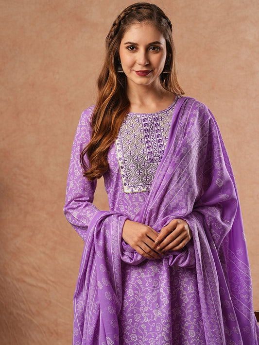 Bandhani Printed & Ombre Embroidered Straight Fit...