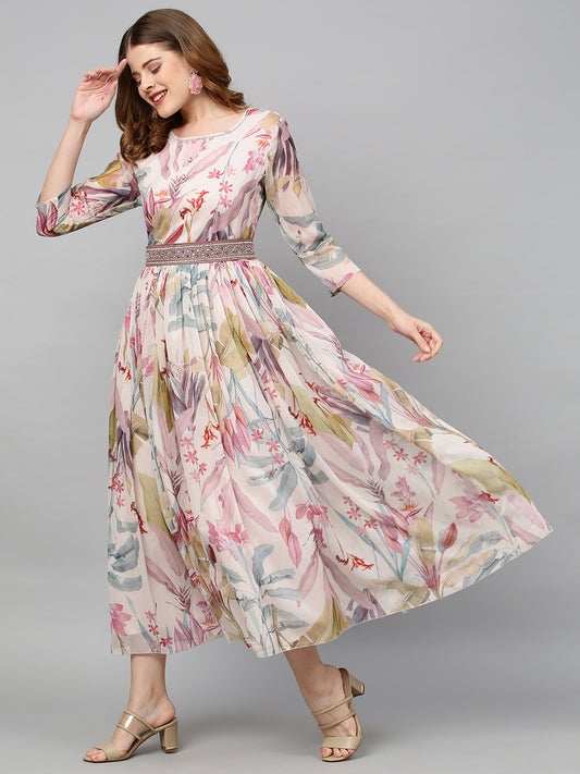 Floral Printed Resham & Sequins Embroidered Kurta...
