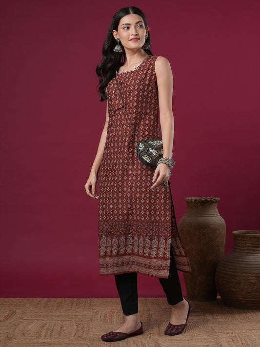 Ethnic Geometric Printed Straight Fit Kurti -...