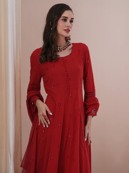 Solid Floral Embroidered Anarkali Kurta with Pant...