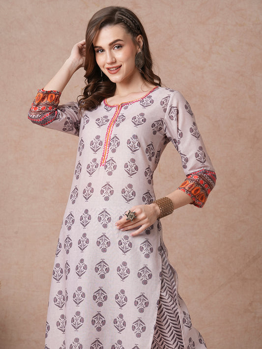 Ethnic Printed & Embroidered Straight Fit Kurta...