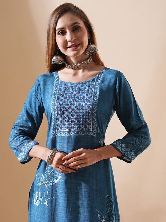 Ethnic Printed Sequins & Resham Embellished Kurta...