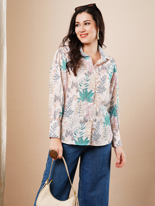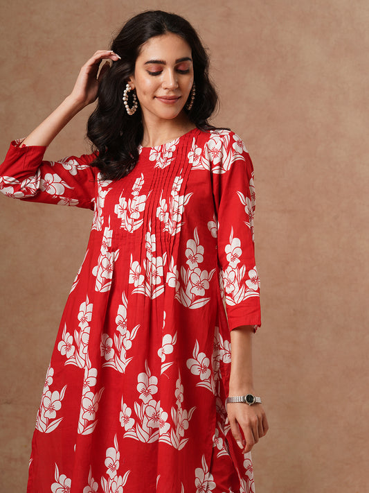 Floral Printed High-Low Hem A-line Kurti -...