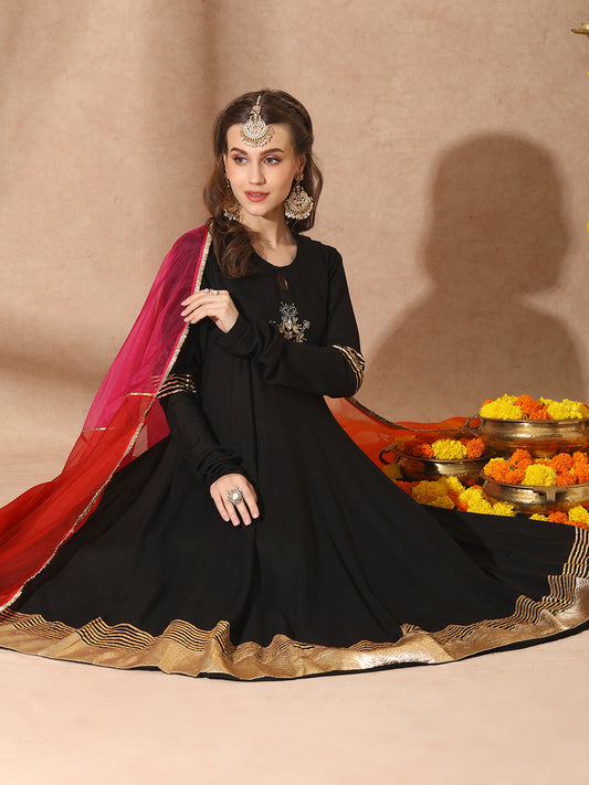 Solid Anarkali Flared Kurta - Black