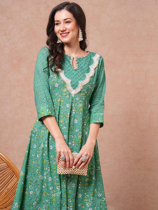 Ethnic Floral Printed Anarkali Flared Kurta with...