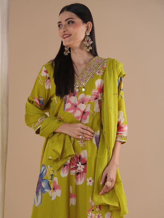 Ethnic Floral Printed & Embroidered Anarkali Flared...