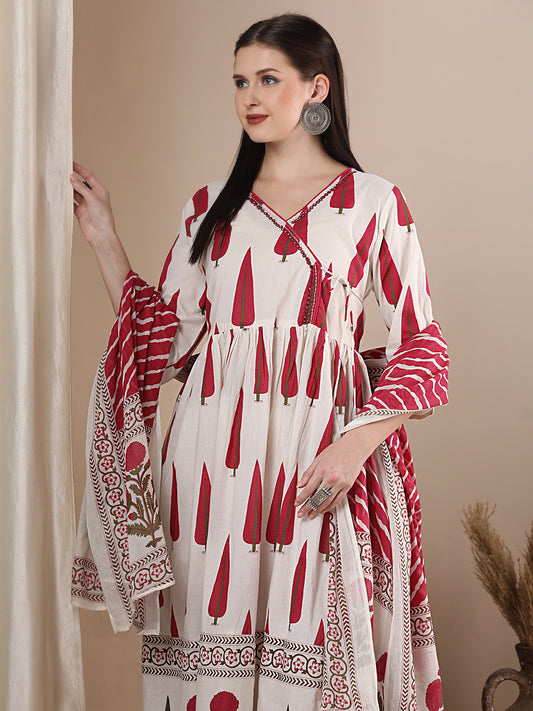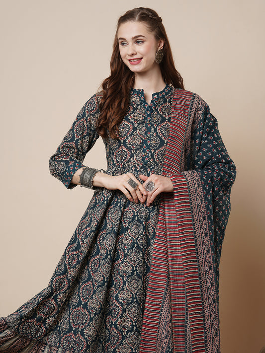 Ethnic Ajrakh Printed Anarkali Flared Kurta with...