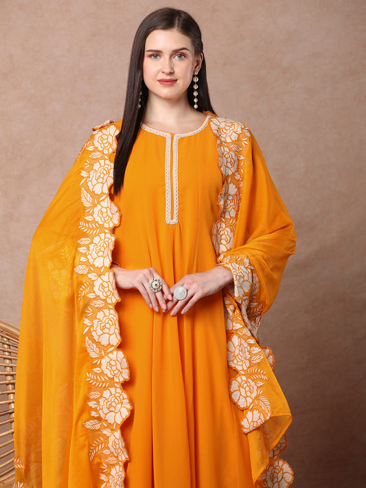 Solid Floral Embroidered Anarkali Kurta with Pant...