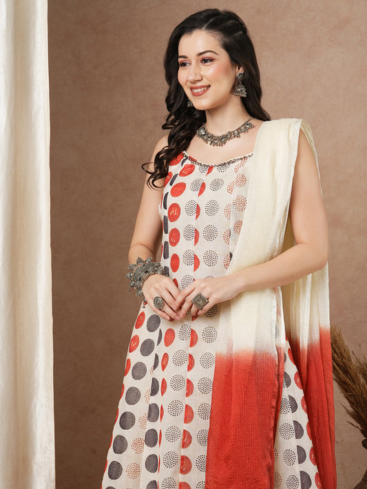 Ethnic Printed & Embroidered Anarkali Kurta with...