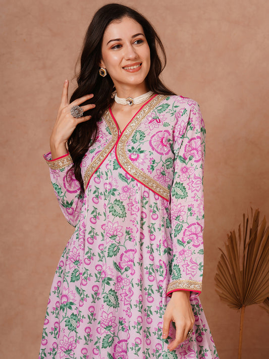 Ethnic Floral Printed Anarkali Flared Kurta with...