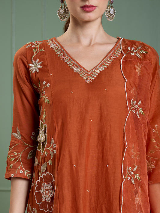 Ethnic Hand Embroidered Anarkali Kurta with Pant...