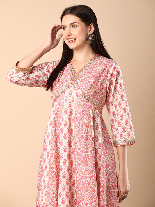 Ethnic Floral Printed & Embroidered Anarkali Kurta...