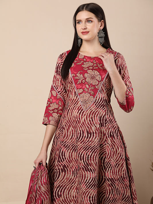 Abstract Floral & Chevron Printed Anarkali Flared...
