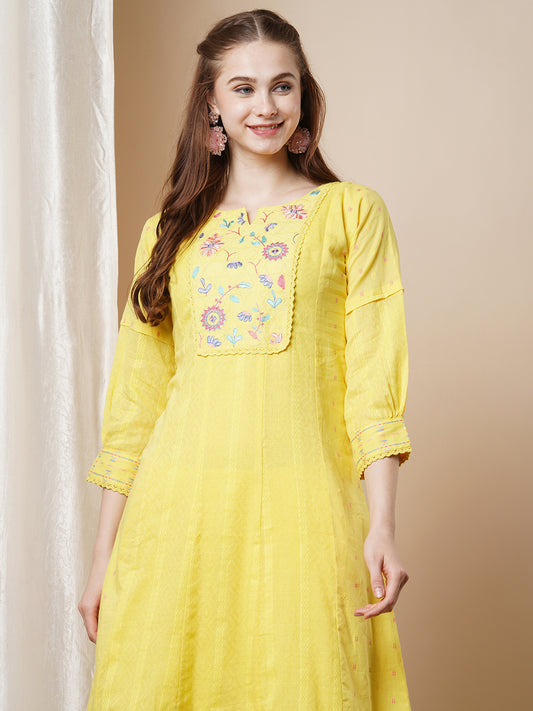 Solid Ethnic Embroidered A-Line Paneled Kurta with...